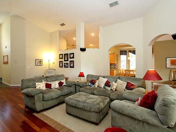 HIGH END UPGRADES throughout this 4/2 1/2 with open floor plan is sure to impress the Buyer who is looking for quality. Sellers EXTENSIVE UPDATES include CAMBRIA manmade granite and GLASS MOSAIC TILE backsplash in the kitchen gleaming BRAZILIAN CHERRY HARDWOOD floors throughout most of the home and custom ARCHITECTUAL MILLWORK in bonus room and master bath. Gorgeous custom made WET BAR with wine fridge sink and wine rack add to the superior enhancements and value in this home. Master suite also features Brazilian cherry hardwoods extra large and spacious walk in closet and recent remodeling to master bath. CUSTOM GARAGE STORAGE is another stand out feature not found in many homes at this price. Reflections neighborhood features a lakefront rec area with community pool tennis courts and playground. EZ access to shopping dining and 19 mile west orange bike trail!