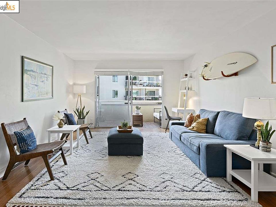 This sun-drenched 1 bedroom, 1 bathroom Condo sits just moments from the shore in Alameda's South Shore neighborhood. Updated with modern luxury and functionality in mind, it boasts an open floor plan, gorgeous hardwood floors, tons of natural light, and plenty of closet space. The eat-in kitchen looks out on the living room and features stainless steel appliances, long counters, a tiled backslash, sleek cabinetry, and a designated dining area. You'll be able to enjoy tons of amenities including a pool, sauna, secure garage parking, and laundry facilities. One of the best locations in the Bay, Crown Memorial State Beach is just across the street and Washington Park is just up the block. That means outdoor fun is at your doorstep: biking and running trails, tennis courts, soccer fields, and of course the gorgeous sandy beach. Downtown Oakland is just 3 miles away and a ferry to SF is even closer, so you can easily enjoy all the cultural attractions the Bay has to offer.