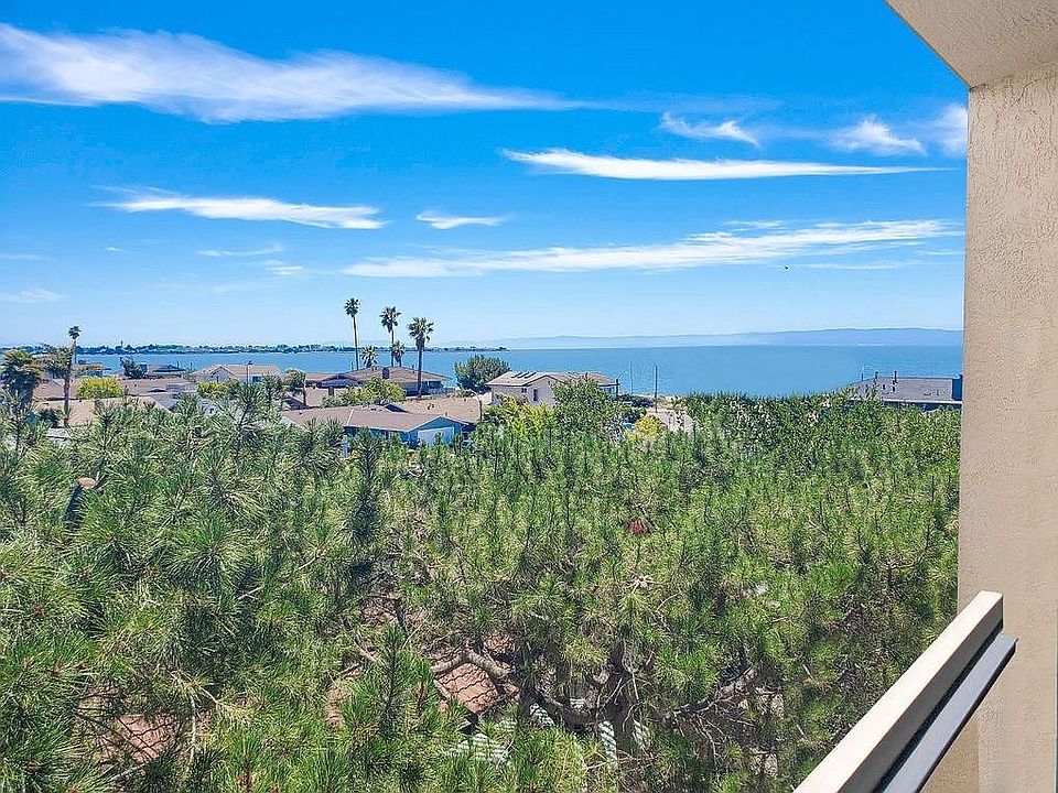 Rarely available, top-floor studio with breathtaking views of the ocean. From your private balcony, enjoy the beauty of the morning sunrise, the calm of the ocean bay. Your windows follow the sun, filling your home with tons of natural light. At the end of the day, relax as colorful kite surfers share the picturesque sky as you unwind. The home features an open floor plan, recent bathroom remodel, new kitchen appliances, LED lighting, floor-to-ceiling built-in cabinets, and a large walk-in closet. Amenities include a pool, sauna, laundry facilities, secure-gated garage, extra on-site storage, and clubhouse. The Shores Condominium complex is located at the end of a quiet cul-de-sac, close to Crown Memorial Beach, Washington Park, S.F. Ferry, many shops, and restaurants. Don't miss this one. Come see today! Some images virtually staged.