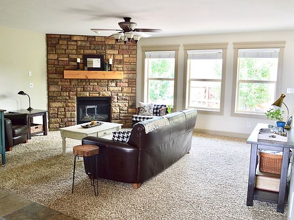 Fully finished and well cared for, this is ready to be your new home. Enjoy the natural light throughout, including a large eat-in kitchen, living room with fireplace and office or formal dining on the main floor. With bedrooms placed up and downstairs, the main floor remains ready to welcome visitors. The spacious master suite includes a custom tile shower and large walk in closet. The nearly-new basement boasts a fabulous theater- style tv room with in-wall surround system, game area, bedroom ( currently used as a workout room), and custom bathroom. The thoughtfully landscaped yard incorporates a stamped concrete patio, mature trees, raised garden beds, sprinkler/ drip system, and French drains. The extra deep, 3 car garage has a heater and extra room for 'toys'. This home is move-in ready in a welcoming neighborhood close to the Wellness Complex, shopping, and parks in the subdivision.