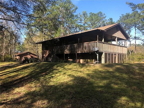 This quaint 2 story home has 2 bedrooms & 1 bath on each level. Each level is also equipped with a kitchen, dining room, living room and porch. Both porches face the pond & river, allowing for plenty of space to enjoy the views. Floors are vinyl throughout the main living area and carpet in the bedrooms. The spacious 2 car detached garage has additional storage area. There is also a separate outbuilding with well equipment & even more storage space. Enjoy the outdoors from the swing located by the pond, or drop your boat in the river from your private boat ramp. This home is being sold "AS IS".