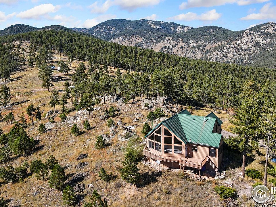 Ready to own your slice of beautiful Colorado? Welcome to 965 Stone Mountain Ranch Rd, a private mountaintop retreat perched on over 48 acres with sweeping views of Pinewood Reservoir and the Front Range. This beautifully crafted cabin blends rustic charm with modern comfort, featuring a durable metal roof, floor-to-ceiling windows, a wraparound deck, and endless serenity. Enjoy main floor living with two bedrooms, a spacious kitchen, and a bright, airy living area. The spacious loft can easily convert to a third bedroom with an ensuite. Just steps away from the home, a massive 1,900+ sq ft outbuilding provides space for cars, campers, and all your mountain toys. Step outside to newly fire-mitigated grounds, a water feature, and multiple sitting areas where wildlife and breathtaking sunsets are your neighbors. Just minutes from hiking, boating, and camping, yet still a convenient drive to town, this home offers the perfect balance of adventure and everyday life. It is truly Colorado living at its finest. Schedule your showing today! Please note, the property is on a private road, please do not drive by without an appointment.