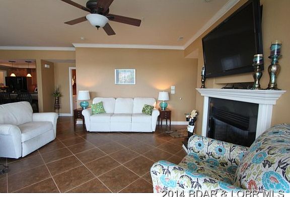 Located in the most desirable condo complex on the quiet side of the Lake of the Ozarks, this beautiful, large, 3 bedroom condo is just what you've been looking for! Well designed kitchen is perfect for the gourmet cook in the family. Tile floors set on the diagonal, gas fireplace for chilly evenings, wall of windows to enjoy the Lake view (just a few gentle steps away!), large master bedroom is en suite. Huge, screened in deck enables you to enjoy the Lake while relaxing in comfort. Includes a 12 x 32 boat slip AND single car garage. What a value!