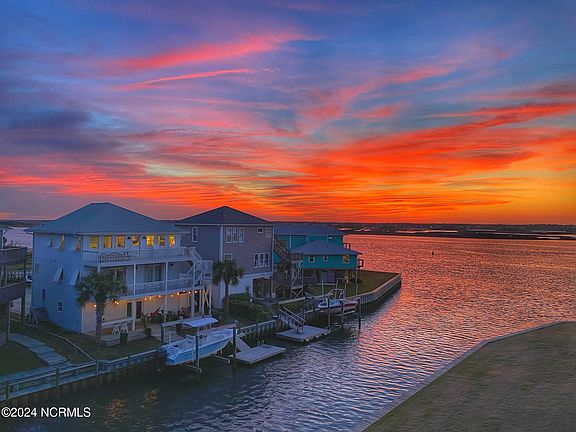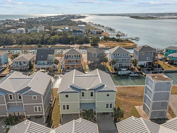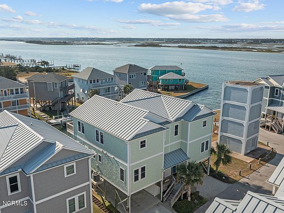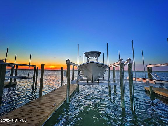 Welcome to your dream waterfront home and private 30' boat dock w/ lift, all steps from the beach in the coveted Queens Grant neighborhood of Topsail Beach, NC! This stunning 3 bed, 2.5-bath duplex offers a perfect blend of modern elegance and seaside charm. You can have it all as you embrace the coastal lifestyle with access to a range of community amenities, including a gated entrance, private beach access and parking, a community pool, marina, day docks, boat launch, basketball court, clubhouse, picnic shelter, and playground. The Queens Grant neighborhood's HOA includes essential services including INSURANCE, water, trash, lawncare, landscaping, exterior building maintenance, cable, and internet. You can indulge in various activities such as boating, kayaking, fishing, and paddleboarding, enjoying unbridled access to both the ocean and the sound in your backyard. This exceptional home is just steps from the beach and is offered fully-furnished and includes a private interior elevator for added convenience. The top floor of this bright and spacious reverse floorplan home features a wall of windows overlooking the water in a contemporary living room and kitchen with granite countertops, along with a convenient half bathroom. The stylish design creates an inviting atmosphere for entertaining friends and family. Venture to the middle floor, where you'll discover three well-appointed bedrooms and a laundry room. The master bedroom is a true sanctuary, boasting a walk-in luxury tile shower, a spacious master closet, and sliding doors to a covered deck overlooking the serene water. The second bedroom also offers its own deck access, providing breathtaking waterfront views. The interior ground level hosts storage closets for all your beach gear and the outside features a carport with plenty of room for you and your guests along with an outdoor shower and a lawn leading to the water and boat docks in your backyard. Rental projections >$75K annually.