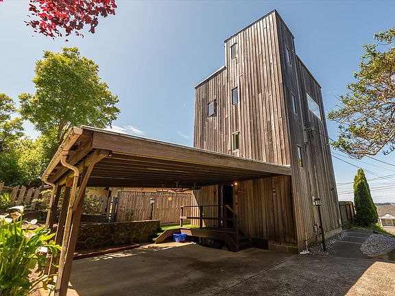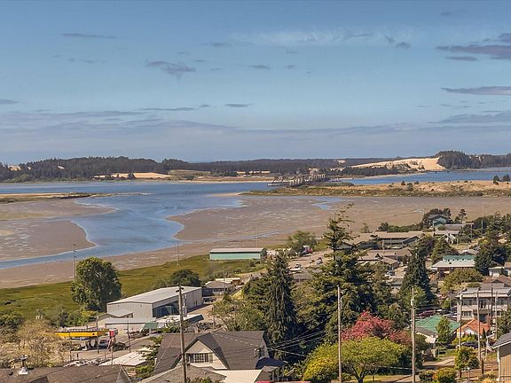 Welcome to your stunning 3-story contemporary tower house! This home is perfectly located in North Bend, Oregon with commanding and unparalleled views from every level and from almost every room. This architectural marvel overlooks the serene Coos Bay to the East, the McCollough North Bend Bridge to the North, and the Dunes and ocean to the West. From the 4th level terrace one can get ocean views while hosting guests! Each floor is designed to maximize natural light and showcase the nearly 180 degrees of breathtaking scenery. The crown jewel is the expansive rooftop terrace that has artificial turf over a membrane roofing, with a functional sink and electric plugins available perfect for an outside kitchen IDEAL for entertaining while soaking in the panoramic beauty. Located blocks from Hillcrest Elementary, Pony Village mall, and mere minutes to the Beach, Dunes and the Bay. This is a terrific AirBnB/Vacation Rental income producing opportunity, or as your coastal retreat.