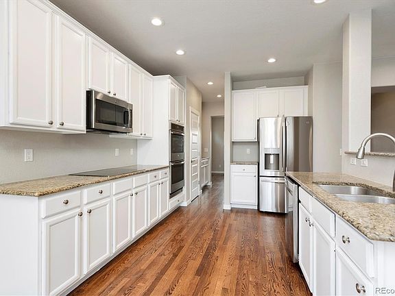 This beautiful open floor plan has a main level master, eat in kitchen, formal dining room and laundry all on the main level. The upper level includes a large loft, 3 additional bedrooms and a study/office area. Granite counters, Double ovens, stainless steel appliances.