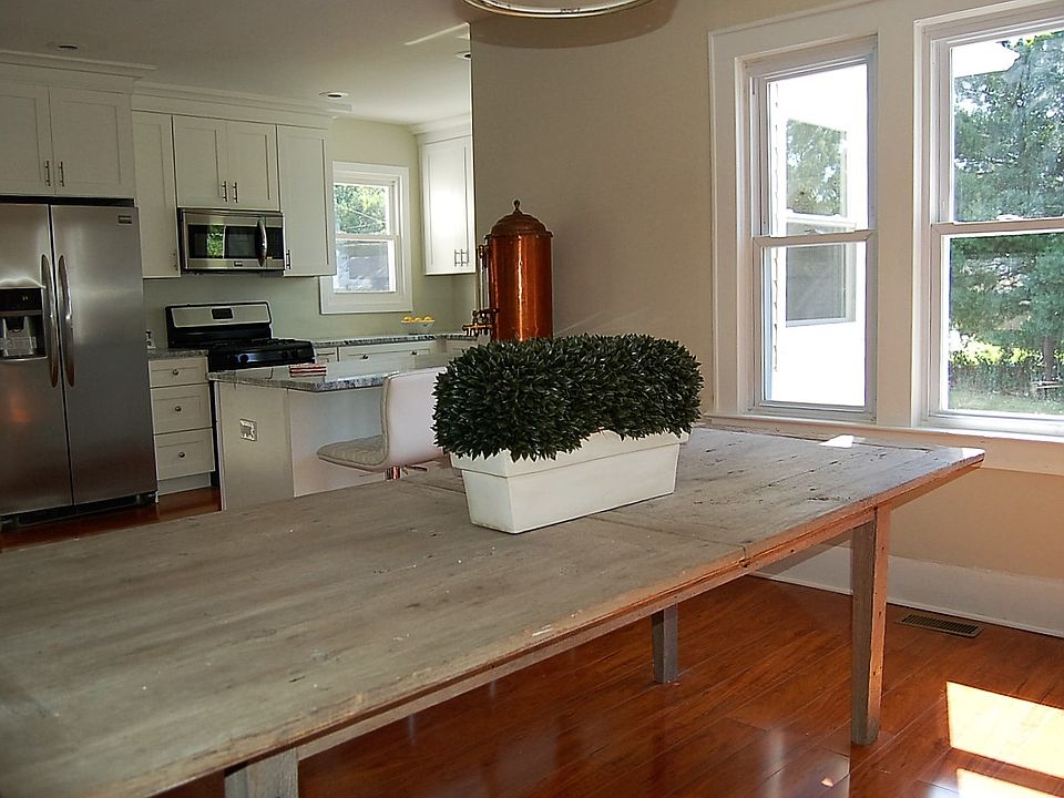 Renovations include new electrical, plumbing, heating, central air, kitchen with granite and cabinetry, baths, flooring, recessed lighting and light fixtures, insulated windows, stainless steel stove, microwave and refrigerator, washer and dryer. First floor features a vestibule, living room with wood burning fireplace, parlor, dining room, office, open floor plan kitchen and half bath. Second floor consists of three bedrooms and a full bath. Ground floor family room with sliders to side and rear yard. Partially finished basement with vintage dry bar and lavatory; ready to be finished. Insulated unfinished attic. Two car detached garage with new doors.