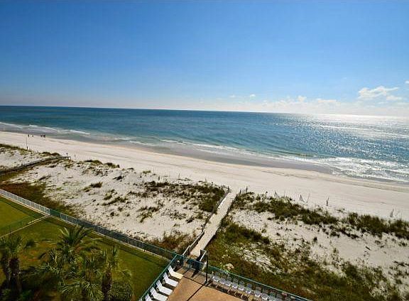 Fantastic Gulf front 2 bedroom 2 bath condo. This 7th floor unit has spectacular views. A great vacation or second home awaits you. Master bedroom has King-size bed with balcony access and private bath. 2nd bedroom has queen size bed. Very comfortable queen sleeper. Spacious kitchen has everything you need to make a gourmet meal. (Regular Coffee pot, toaster, blender, crock pot all available in unit.) Surfside Shores is a very desirable Alabama beachfront condominium w private beach access that gives you plenty of space to enjoy the beautiful azure water and white sand of Gulf Shores. A number of shops and restaurants are within walking distance including The Hangout. Bike to the Alabama State Gulf Park. Beautiful view of Little Lagoon from the front door.