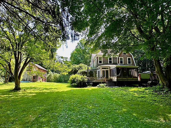 Large Victorian home with many wonderful features. 4 bedrooms, 1 and half bathrooms. Kitchen and dining area are open to each other for entertaining. many built ins, beautiful wood floors and stained glass are spread through this home . Styled with a parlor and a family room, main level laundry, 3 season porch, hot tub and more. Outside the mature trees grant privacy and the barn/garage has plenty of storage. The house also has an attached workshop space.