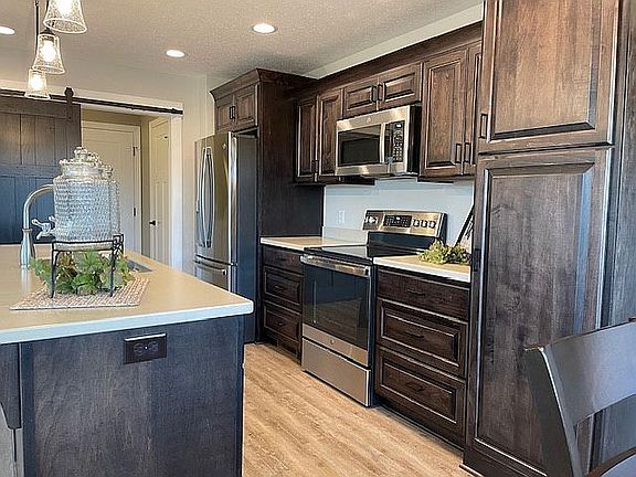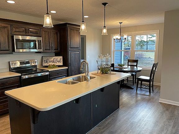 Built by 89 Homes, this new construction home is designed for single-floor living and features Vinyl Siding, LVP, Solid Surface Counters, and Custom Amish-Built cabinets with soft close doors and drawers.