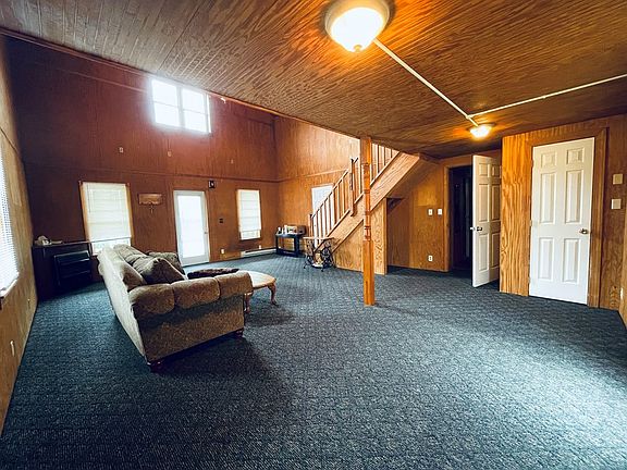 Check this one out! This is a very unique property and has lots to offer! Some features of the home are cathedral ceilings, exposed beams for that cabin feel, gas logs, a nice den/family room with laminate flooring, an unfinished walk out basement, and a newer roof. Outside you will find a nice paved driveway, a nice level yard with views off of the front covered patio, an abundance of storage and space for your vehicles including a 24x56 metal garage and a 20x20 metal enclosed carport. Other features include, an old post office on the property with a great amount of history attached to it, a 1986 oakwood singlewide mobile home, a "cabin" with a lot of potential, and much more. The home is listed as a 2 bed room but there are about 5 rooms in the house that could be used as bedrooms.