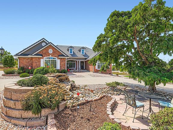 From the moment you drive up the tree-lined driveway you will experience how truly special this home is both inside and out. Presenting a custom home on 2.07 acres with 5,000+ sq ft of open-concept living PLUS attached (807 sq ft) and detached (1,000+ sq ft) garages. Differentials to other homes include concrete circle drive (not asphalt), concrete tile roof, large deck with beautiful mountain views, finished basement and nicely updated. LOCATION LOCATION LOCATION of this home is perfectly positioned on a corner lot and cul de sac for optimal privacy and gorgeous mountain views from the oversized covered deck. Peaceful and quiet location yet quick and easy access to I-25, E-470, shopping, dining, entertainment and more. The open concept layout has a chef's kitchen, home office, walkout basement w/wet bar with special touches including wood floors, plantation shutters, skylights, archways and beautiful lighting throughout. Superior landscaping, circular drive, covered patio, horse-friendly lot and room for a second outbuilding. Zoned A-1 and you can have 1 horse per acre, allowing a rare opportunity to have 2 horses here. Don't miss out on seeing this beautifully updated home, you won't be disappointed.