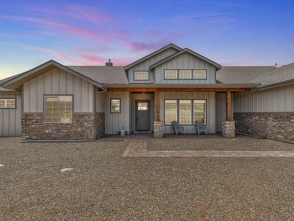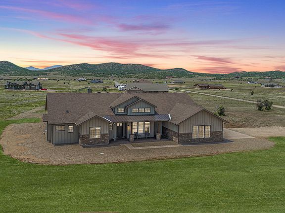 This beautiful new build is 4 bed/2.5 bath located on 2 acres in the highly desirable neighborhood of Saddle View. Built by Pinnacle Builders, this home has an open floor plan with custom finishes, and breathtaking views. Enjoy the sunsets looking at Granite Mountain, the city of PV, and the sunrise as it peaks over Mingus Mountain. This exquisite property won't last long with its beautiful craftsmanship, its covered back patio, apoxy floors in the garage, pavers on both front porch and back, and many other custom features.