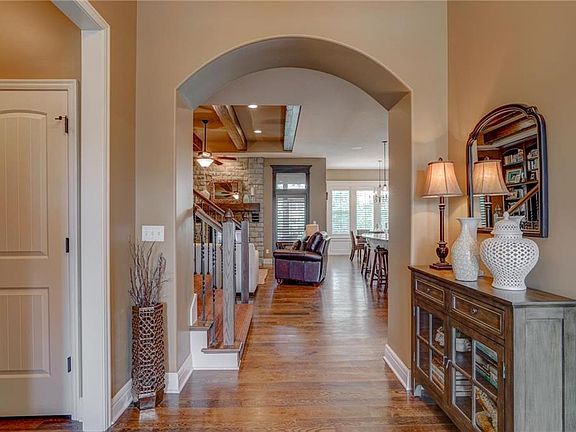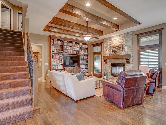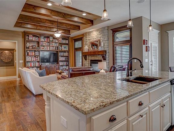 Gorgeous 1.5 by James Engle. Details throughout this beautiful home! Great room features wood beams, built in book shelves and see thru stone fireplace. Open Kitchen that is perfect for entertaining. Large center island, gas stove, stainless appliances & huge walkin pantry. Coastal dining room with wainscoting, hardwood flrs & butler bar w/ wine fridge. First Flr master suite w/ jet tub, dual vanities & door that walks out to screened in porch w/ fireplace & custom wood ceiling. Spacious secondary bedrooms w/ loft. Walkout Finished LL w/ 5th bedroom & fantastic bar! Fenced in yard on Cul-de-sac lot!