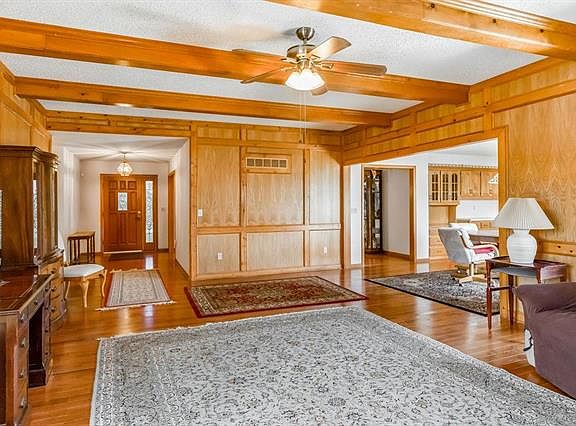 Amazing opportunity to purchase this pristine ranch home on 26 AC in a wonderful location just south of Staley Farms. Property also has a 4 stall stable, outbuilding w/ concrete floors, and a hobby barn w/ heat & A/C. This brick ranch is very well maintained, spacious, & is even wheel chair accessible. New hardwood floors were installed throughout in 2015. Classy & warm great room features a fireplace surrounded by built-ins, wood beams, fan, & access to the backyard.