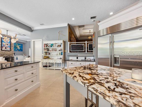 Spectacular home in The Loop at North West Bradenton!! This beautiful 4 bedroom, 3.5 bath home is located in NW Bradenton's premier gated community. Double French solid core birch doors open up to a spacious and bright living room with Portuguese limestone flooring, wood cased windows, Virginia stack stone fireplace, tray ceiling, hardwood floors. Gorgeous mahogany built-ins. Gourmet kitchen boasts New Sub Zero fridge, induction stove, all new stainless steel appliances, granite and cherry wood cabinets, wine cellar, spice closet, and a center island. Interior design includes a study, private exercise room off the Master bathroom, private his/her walk-in closets, sliding doors out to lanai, a billiards room, Jack & Jill bedrooms. The out door living area is stunning! Gas heated salt water pool and spa! Outdoor kitchen and bar area for entertaining, custom crafted metal sculpted fence. Upgraded copper gutters, paved pool deck and driveway, 3 car garage, new A/C unit , all A/C units have UV lights. Walking distance to Robinson Preserve and close drive to Anna Marie Island beaches!