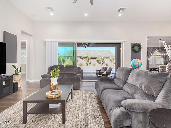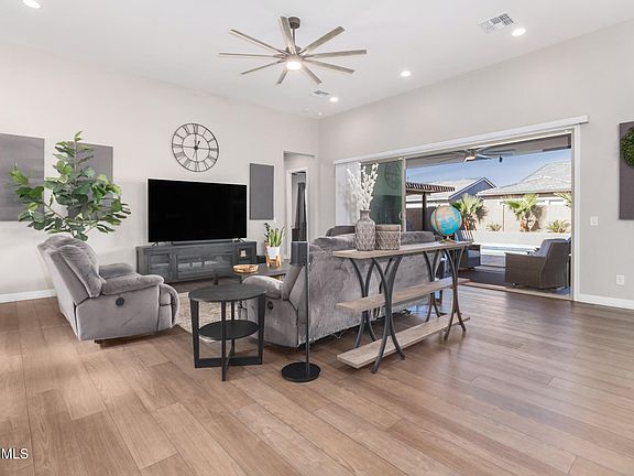 Stunning 4 Bed/4.5 Bath with 2 BONUS ROOMS, DIVING POOL and 3 Car Garage, with approx $165,000 in upgrades in Eastmark. Gorgeous kitchen with 42'' cabinets, quartz counters, huge island, stainless steel and backsplash. Morning Kitchen which is an extended Butler's Pantry for your extra fridge, meal prep, & storage. Open floor plan with 12 ft ceilings and a beautiful wrought iron double door. Upgraded luxury vinyl plank throughout the home. Oversized slider to the backyard for your indoor/outdoor living. Primary bedroom with direct access to the laundry room from the walk-in closet. The primary bathroom has a spa shower. Eastmark has several schools in the neighborhood including Basis Charter school. Over 70 parks, a club house full of activities, heated pool, concerts, dining & more
