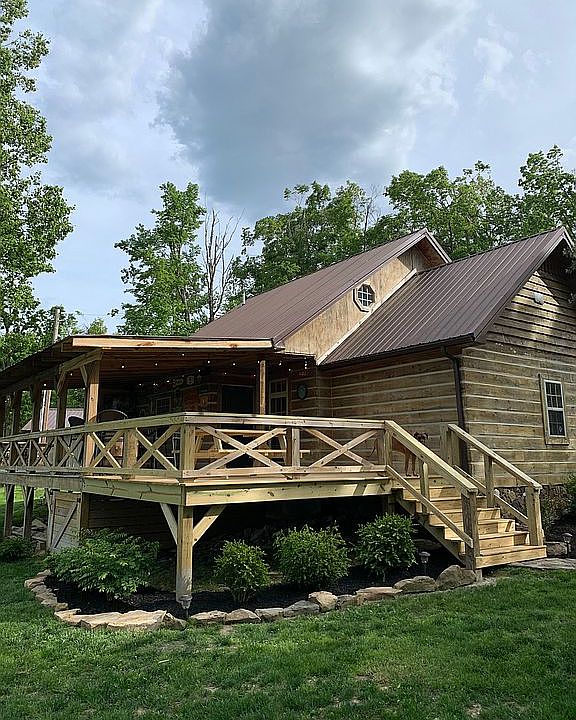 Totally remodeled rustic cabin in the heart of the Daniel Boone National Forest sitting on top of Drip Rock mountain on 26 acres. Beautiful views from expansive deck overlooking property. New gravel road winds back to new one acre fully stocked pond with dock. Trails throughout property. ATV enthusiast paradise. Ride straight from cabin to hundreds of miles of trails and the historic station camp creek. Irvine is home of the annual mountain mushroom festival and local favorite dining and entertainment venue Steam Engine Pizza Pub and Session Room. Local Musicians from all over KY and Appalachia perform at the venue. Less than a 15 minute drive to downtown Irvine, 30 mins to Richmond and interstate 75 and less than an hour from Red River Gorge. New HVAC system in 2019. New 21 x 30 barn and expansive 48’ x 18’ covered deck. Selling turn key with all furnishings included in listing price.