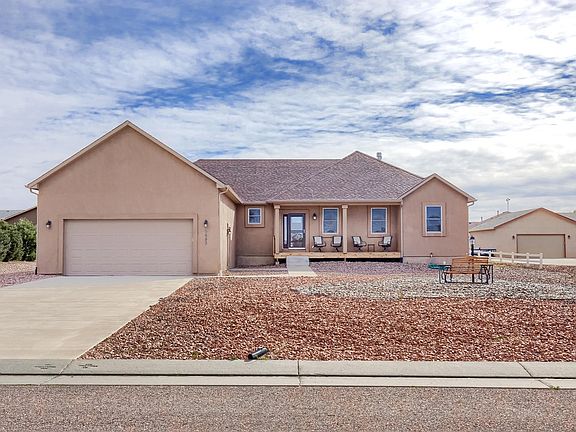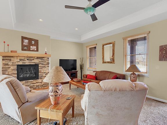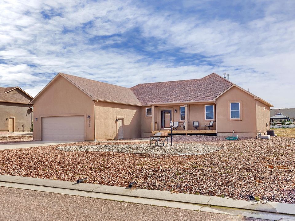 Welcome home to main level living at its finest in the Paint Brush Hills community! Allow the covered front porch to welcome you home to this 3 bedroom, 2 bath, nearly 4000 total sf ranch style home featuring an open floor plan throughout the main level. As you enter, you are greeted by the inviting great room showcasing a tray ceiling and gas fireplace with blower, perfect for the cooler Colorado weather. Beautiful open kitchen features slab granite counters, island, refrigerator, dishwasher, built-in microwave and range/oven with a casual dining nook and walkout to the backyard. Retreat to the master bedroom where you will find two walk in closets and 5pc bath with heated floors, vessel sinks, jetted soaking tub, separate glass enclosed shower and linen closet. Two secondary bedrooms, flex room/office/nursery, sparkling full bath featuring tub to ceiling tile and large laundry room with built-in storage shelves and washer/dryer included complete the main level. Let your imagination be your guide in the unfinished basement with 2 rough-ins. Access the oversized 2 car garage from the inside of the home where you will also find an extra closet close-by for convenience. Enjoy the nearly ½ acre lot with many outdoor entertaining possibilities and mountain views! Additional amenities include sump pit with sump pump, A/C, laminate wood flooring in entry, garage entry, kitchen & kitchen nook. Located near schools, restaurants, community amenities and Highway 24, you will enjoy the small town feel yet just miles away from the Powers corridor.