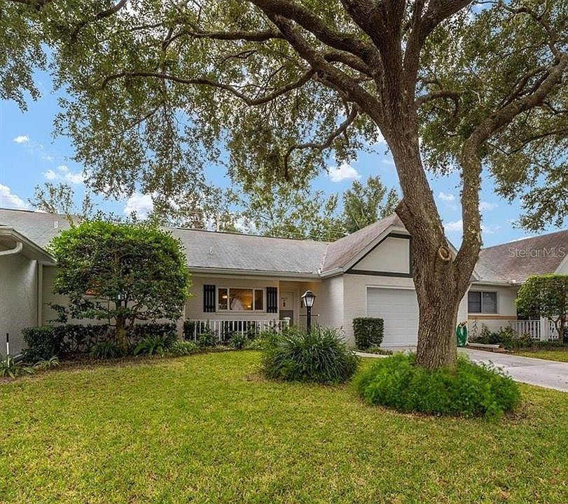 Welcome to this beautifully maintained, move-in ready 2-bedroom, 2-bathroom villa situated on a private lot with no rear neighbors. This attractive Sienna II model features a desirable split floor plan, vaulted with no popcorn ceilings, and stylish flooring throughout?vinyl in the main living areas and newer carpet in the bedrooms. The kitchen offers numerous upgrades, including newer appliances, a tile backsplash, custom Wellborn cabinets, and recessed lighting. The bright and airy open floorplan is enhanced by vaulted ceilings and updated windows (replaced in 2013). This home has been exceptionally well cared for, with major updates including: Brand new roof (June 2025) HVAC replaced in 2013 Hot water heater replaced in 2016 Washer (2024) and dryer (2022) Garage door replaced in 2023 Enjoy peaceful mornings on the southwest-facing front porch overlooking green space and a beautiful tree-lined road. Furniture included Located in On Top of the World, Ocala?s premier gated 55+ community, this home provides access to incredible amenities?including golf cart access to two shopping centers.