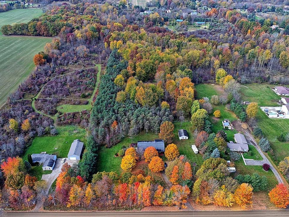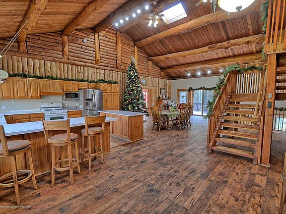 Spectacular log home on 10 acres just minutes to I-69! Currently 3 bedrooms & 2 baths with large 2nd floor loft plus potential bedroom in basement. Open floor plan with vaulted ceilings for kitchen, dining & living room. Kitchen has new countertops coming! Primary BR has 6x12 Walkin closet & private bath with dual bowl vanity, whirlpool tub & tiled shower! 2 BR on opposite end of home along with another full bath. What a view from loft upstairs, would make great BR, home office or ?? Lower level has rec room, potential 4th BR, giant storage & laundry room, plus workshop area with egress windows. Out back is 16x42 ft deck for incredible entertaining, plus 16x16 covered area leading to giant patio. Outdoor woodburner for low cost heating & generac backup generator for peace of mind. Dont miss the 24x32 insulated workshop & the shed perfect for your critters! 2+ acres fenced!