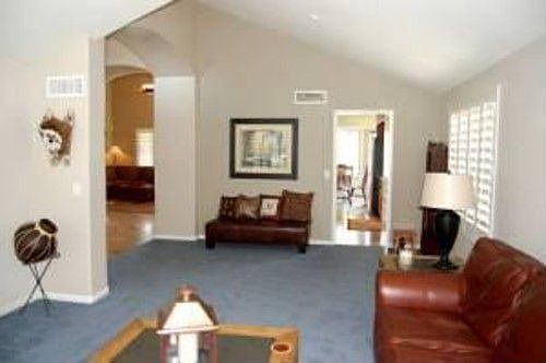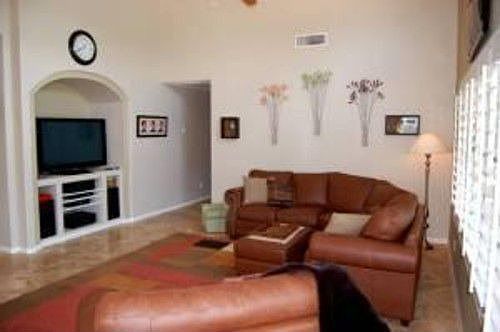 Situated on a Premium N/S Lot Backing to Greenbelt Model Sharp Home Featuring 3 Bedrooms Plus Den(with Closet Cut-Out), Sep. Living, Family, & Formal Dining Rooms, Lots of 18'' Diagonal Set Travertine, Plantation Shutters, Vaulted Ceilings, Accent Paint, Eat-In Kitchen w/Bay Window, Island/Breakfast Bar, Oak Cabinets, Smooth-Top Range, B/I Micro, & Newer Stainless Steel Dishwasher, Soft Water System, Media Niche in Family Room, Vaulted Ceilings in Owners' Suite, Sep. Shower/Tub w/Glass Block, Dual Sinks, Walk-In Closet, & Sep. Exit to Patio From Owners' Bath, Covered, Extended Patio w/Ceiling Fan Overlooking Nicely Landscaped Grassy Yard w/Partial View Fence, Epoxy Coated Garage Floors, B/I Cabinets, Sink, & 220V Outlet in Garage, Within Walking Distance to Elementary School
