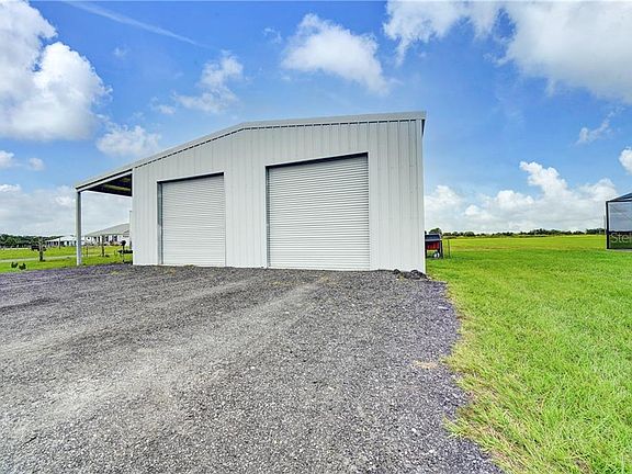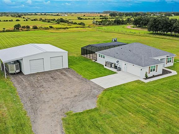 Pinterest inspired farmhouse !!! Everyone will enjoy this spacious home sitting on 5.83 acres with a 65'x40' detached building (50'x40 enclosed with 15'x40' lean too, (2) 12'x12' roll up doors, 2 bypass doors). Inside this custom home you will find wood looking tile throughout, 8' interior and exterior doors, PGT impact windows, PGT impact sliders, large kitchen with cabinets floor to ceiling, soft close cabinet doors & drawers, built in spice racks, quartz counters, two pantries, built in ice maker, wood hood vent cover, 12' island with wood wrap, GE slate appliances, under sink filtration, tray ceilings, can lights, barn door with mirror in the master, tray ceilings, dual walk in closets in the master, large L shaped vanity with two mirrored medicine cabinets, 4'x7' walk in shower with glass enclosure, luxury plank tile in showers, interior laundry room with overhead cabinets, linen closets, living room and kitchen over look the lanai and pool. Outside you will find a paver lanai, 15'x30' pool with two sun shelves, pool umbrellas, spa, pool heater, summer kitchen has been stubbed out on lanai, plenty of extra space around the pool to lounge with the 35'x 58' caged pool deck. Plenty of EXTRAS in this property, Oversized attached garage, detached garage has separate electrical service and meter, rough plumbing for a full bathroom & extra sink in the detached building, oversized septic to accommodate that extra bathroom if desired, generator plug with default box on the side of the house, outlets in the soffits with designated switches, gutters and so much more !! Call today for more information