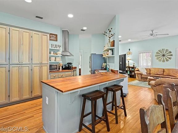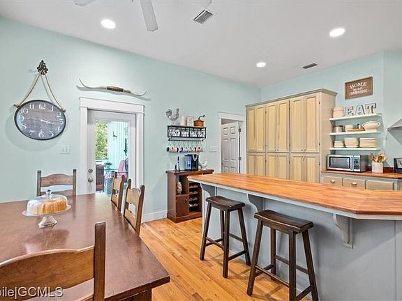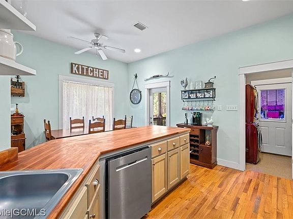 This one of a kind home sits nestled on 3.29 wooded acres with a pond in a quiet area many consider to be the "hidden gem" of north Mobile . The interior of the home boasts a very casual yet coastal style and the 9ft ceilings are enhanced by the light and airy color palette which contrast perfectly with the pine hardwood floors. The modern kitchen is complete with SS appliances & vent hood, butcher block counter tops and extra cabinet storage. The homes 25x10 private screened in back porch looks out over the pond and the space is perfect for lounging or hosting a barbeque. This property is located in an area that may qualify for USDA financing to an eligible buyer.