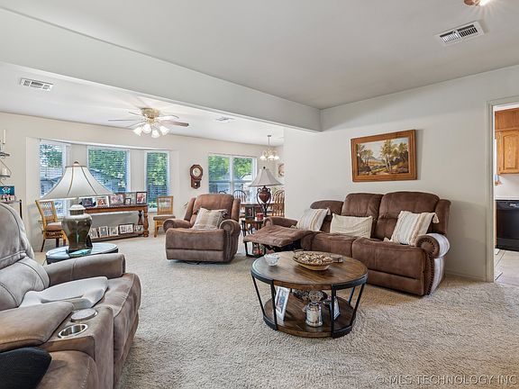 Very nice full brick home with rear entry garage. Newer windows, HVAC only 10 years old. Covered patio. Separate laundry room, large living room with woodburning fireplace with gas logs. Living room has been opened with the formal dining area. Kitchen has newer cooktop and microwave and also a bay window in the breakfast nook. Covered patio, storage building. Garage has been converted into half office/half storage but could easily be converted back into a full 2 car garage.