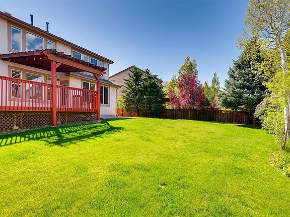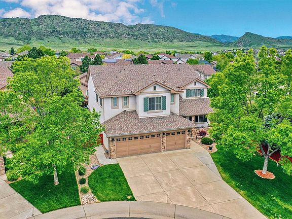 Quiet cul-de-sac, stone/stucco 2-story home w/6 bed,4 bath & a finished basement in sought after Trailmark! As soon as you walk into this beautiful home you will notice mountain views from all west facing rooms, gleaming hardwood & 2-story ceilings. Living rm offers gas fireplace w/marble tile surround. Gourmet kitchen offers SS appliances, granite counters & 42in crown molded cabinets. Master suite w/vaulted ceilings,5 piece bath & mtn/sunset views. Summer bbq's made easy w/huge back deck & pergola. New carpet & tile installed-2019. Trailmark offers many amenities including bicycle/walking trails, mtn views & is surrounded by 1500 Acres of Jefferson County Open Space. Close to the Chatfield Arboretum, Chatfield State Park, Waterton Canyon, Deer Creek Canyon, Colorado Hiking Trails & Roxborough State Park. Live in the foothills w/easy access to Lockheed Martin, C-470 to I-70 & on the ski hill in 1+ hr! Aspen Grove Light Rail Station just 10 minutes away for easy downtown commute!