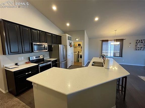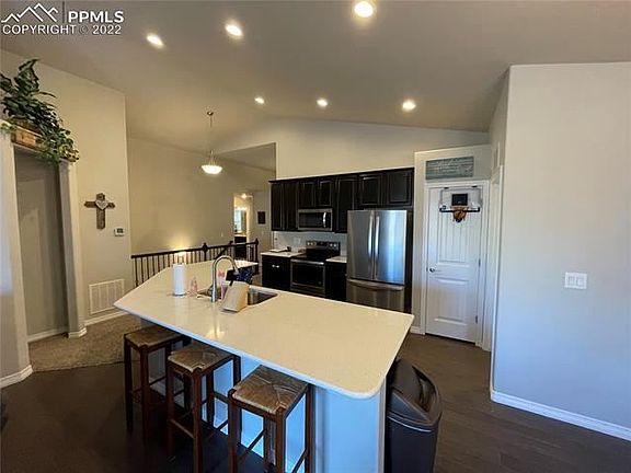 Wonderful 5-bedroom, 3-bathroom Meridian Ranch home that backs up to open space. Newer everything as the home is only two years old. The open floor plan on the main level features a kitchen with stainless steel appliances and an expansive island with a breakfast bar. From there the dining room flows into a spacious and bright living room which leads out onto a deck and large patio space through the back door. The beautifully appointed master suite boasts a 5-piece master bath and ample walk-in closet space. Two additional bedrooms and a full bath complete the upper level. A massive rec room makes the fully finished basement perfect for entertaining. An additional two bedrooms and full bath round out the basement. This golf course community includes access to a recreation center with indoor and outdoor pools, basketball courts, weight and cardio areas, and regular community events. Meridian Ranch also contains several well-maintained parks, miles of trails and quick access to several schools within District 49 along with near-by shopping. Don't miss this amazing opportunity to love where you live.