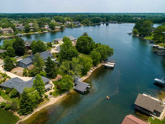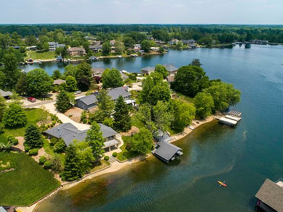 This lake home has been renovated top to bottom & offers a bright, clean, crisp home base for you to enjoy Harrison Lake, a private lake community situated with Harrison Lake Country Club! The house itself was built near the water level, with the shoreline just a few steps away from the walkout basement. It features a custom kitchen, open concept living room, and large master suite; all of which spill out the Pella sliders onto the lakeside deck. Almost every room in the house offers a water view. Drive your boat over to the Club and enjoy pickleball, tennis, swimming pool, fine dining, and the par 71 championship golf course! Enjoy some of the cleanest lake water in Indiana on Harrison Lake!