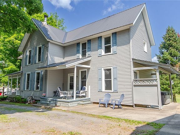 What a wonderful home located in the village of Croghan! This meticulously cared for beauty offers 3 bedrooms, 2 full baths, newer windows and a beautiful eat in kitchen that features a tin ceiling. Alongside the kitchen you will find a large pantry where the sink is located and a downstairs full bath with the original clawfoot tub for soaking. The first floor of this home also offers a large dining room with hardwood floors and a woodstove, a light and bright living room and 1st floor laundry room that is big enough for a possibly office space. Upstairs you will find three bedrooms and another full bath. The exterior of this home boasts a huge 3 stall garage with plenty of storage and a second floor that can easily be finished for extra living space. There is a additional 2 stall garage, beautiful patio with a firepit and 3.20 acres with numerous mowed trails. Plenty of wildlife to be seen on the back fields which buds up to the snowmobile trail system. Don't wait, call today!!