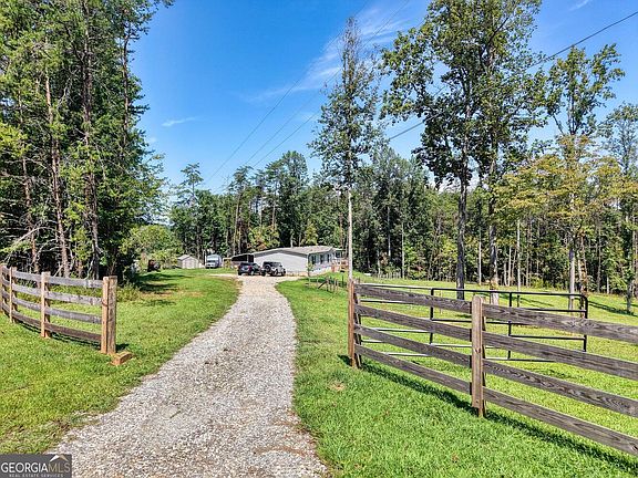 Mini Farm 5 Acres - 4BR/2BA | North Georgia Mountains. Private Mini Farm tucked away off a quiet, paved road in the scenic North Georgia Mountains. This 4BR/2BA home sits on 5 acres of peaceful, unrestricted land-a rare blend of modern comfort and rustic charm. Step inside to a spacious vaulted ceilings, move-in-ready layout offering two distinct living areas-one perfect bonus room for hosting formal guests, and the other a relaxed space ideal for movie nights, game days, or casual gatherings. At the heart of the home is a generous kitchen with ample prep space, custom cabinetry, and a sit-down dining area. The split-bedroom design ensures privacy, with the primary suite perfectly positioned to capture mountain views. A spacious walk-in closet adds comfort and convenience, while guest bedrooms are thoughtfully placed on the opposite side of the home. Smart storage solutions include built-in shelving, entertainment centers, laundry room, & pantry. Outside, enjoy a true mini-farm setup with public water, custom wood fencing, established pastureland, and year-round long-range mountain views. Property features a 25x25 horse barn (2 stalls), 12x20 workshop, 12x16 storage building (2022), and RV hook-up with power, water, and sewer. Whether you're seeking a serene mountain retreat, a working hobby farm, or a full-time residence with seclusion and convenience, this property delivers. Conveniently located near Blairsville, Hiawassee, Lake Nottely, and Murphy, NC-with easy paved access and endless natural beauty.