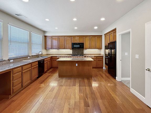 This spectacular 2-story home is located in the desirable Bridges golf course community in San Ramon! It has 4 bedrooms (plus den), 3 full baths, 2-car garage, dramatic entry with towering walls and spiral staircase, luxurious open floor plan with beautiful hardwood floors, brand new carpets, spacious family room with media niche and gas fireplace, formal living and dining room, and inside laundry room (does not include washer & dryer). The large gourmet kitchen features granite slab countertops, a huge center island, built-in double ovens, 5-burner gas range, microwave, dishwasher, and refrigerator. The master suite has vaulted ceilings and boasts a huge master bath with tiled floors & marble countertops, dual walk-in closets, double sinks and vanities, plus a Jacuzzi jetted tub. Other amenities include central air conditioning, dual pane windows, custom window coverings, recessed lighting, wine storage alcove with built-in cooler, and more! Private rear yard backs to open space and includes a lovely custom patio with medallion inlay, built-in barbeque, and fantastic playground. The plush-green yards are professionally landscaped with automatic sprinklers, and rent includes a gardener! The home is conveniently close to the community pool and tennis courts, walking trails, and the Plaza at Gale Ranch Shopping Center. Enjoy fantastic schools, located in the highly rated San Ramon Valley School District! Sorry, no pets.