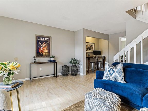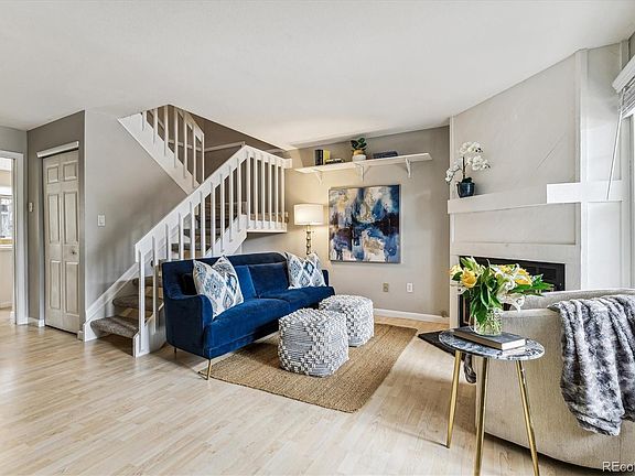 Discover the epitome of comfortable living in this delightful 1000 sq ft home featuring 2 bedrooms and 2 bathrooms. The sunny living room greets you as you enter the front door and features a wood burning fireplace and a sizable niche that could be used as a work from home office, craft room, or additional storage! Don't miss the oversized coat closet with access to the large crawl space. The living room flows seamlessly into a dining area, creating an inviting atmosphere for entertaining or relaxation. Culinary enthusiasts will appreciate the kitchen's new oven, new dishwasher, and appliances with the added convenience of direct access to an attached private back patio complete with a storage shed. Moving to the upper level, skylights adorn both large bedrooms, infusing natural light throughout the space. The primary bedroom has an attached full en suite bathroom featuring new fixtures. The second bedroom has its very own 3/4 bathroom only steps away. Fresh paint and modern light fixtures elevate the interior ambiance. Community amenities include access to a refreshing pool just across the street. Exclusive parking right in front ensures hassle-free convenience. Don't overlook the surrounding restaurants, shops, grocery store, and super convenient access to E-470. With meticulous maintenance evident throughout, this residence offers a perfect blend of style, comfort, and practicality, promising a truly enjoyable living experience. Welcome home!