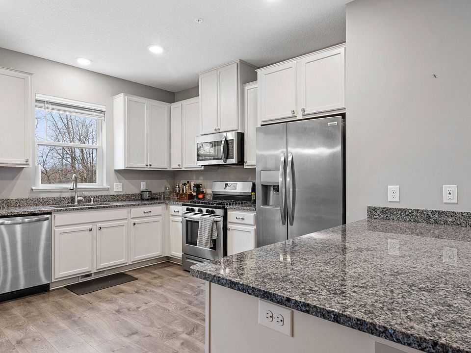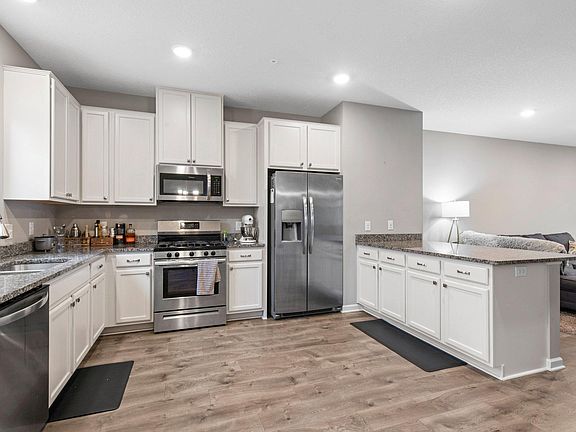 This immaculate townhome offers a perfect blend of open, light-filled spaces and modern upgrades, creating an inviting and contemporary living experience. The residence boasts two spacious living room areas, providing ample room for relaxation and entertainment. Featuring two primary bedrooms, both on the upper level, the main floor conveniently accommodates a flex room, offering versatility as either an office space or a cozy day bed retreat if you choose. The home's walkout design allows for seamless indoor-outdoor living, leading to a fully tree-lined backyard that ensures both tranquility and privacy. Additionally, the exterior includes a very private deck entertainment area, ideal for gatherings or peaceful evenings outdoors. Situated just 5 minutes away from local stores and a mere 10-minute drive to the Shops of Arbor Lakes, residents enjoy the convenience of quick access to Highway 94 and 610, making commuting a breeze and enhancing the overall appeal of this charming townhome.
