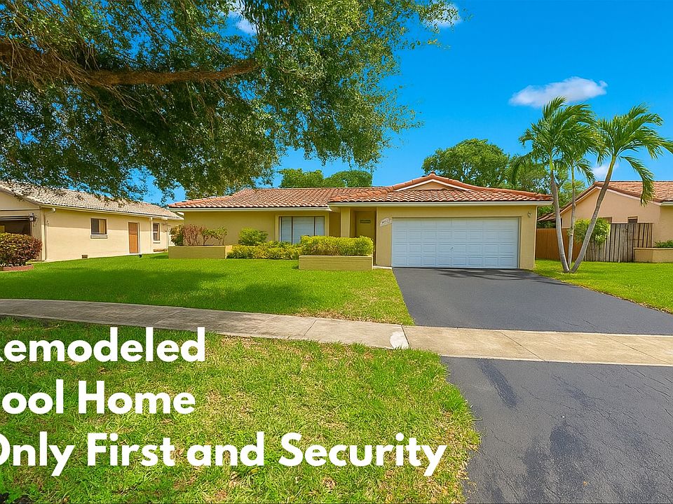 Beautiful 3bd/2ba single family home with pool, 2 car garage and fenced backyard in the CANTERBURY ESTATES community of Coral Springs NO HOA APPROVAL. MOVE IN TOMORROW.. Property features split floor plan, updated large kitchen with granite countertops, wood cabinets & stainless steel appliances, vinyl floors throughout . Screened and covered back porch. Excellent location. A grade schools. No HOA. Fast Approval. Pets allowed with non-refundable pet deposit of $250/pet. Tenants must have over 600 credit score over. Only first & security required to move in with approved credit.