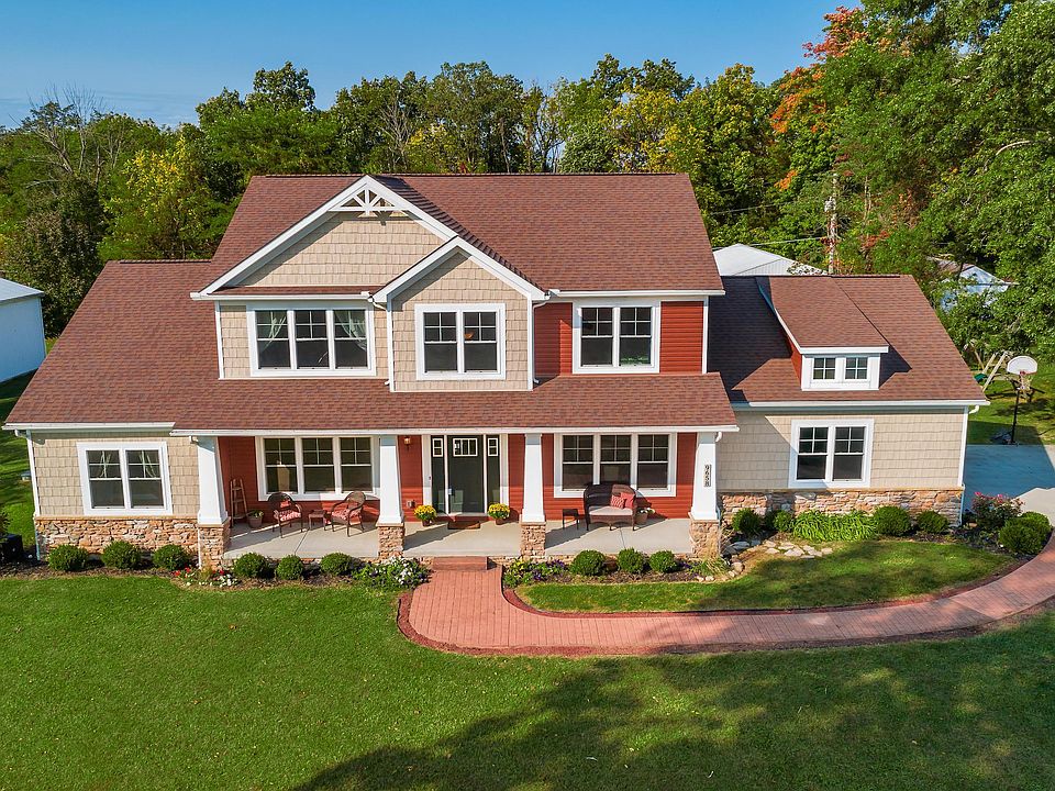 ***Highest & BEST by 3:00 on Sat. 10-10** UPGRADES GALORE! A 2-story great rm boasting a ''floor to ceiling'' stone fireplace. Gourmet kitchen w/7.5 ft. Island, 42 ' soft close cabinets w/crown molding, under cabinet lighting, Corian cntertps & Tile bcksplsh. 9 ft. ceilings & luxury vinyl accent most of the first flr. Barn doors lead into your hm office. The Mst. Ste is adorned w/dual head Walk-In shower, tub, adult height vanities w/Quartz cntrps w/a massive walk-in closet! 1st flr laundry. Loft, 2 bdrms & full bath. 13 crse full bsmnt, rough-In for a 3rd full bath & bdrm. ''PEX'' water system. (12x14 covered patio w/fan & stamped concrete walkways. The outbuilding is 60X30 w/ 12 ft. clearance. 2 electric boxes. 2 parcels are being sold = 2.49 acres w/wooded lot...WOW