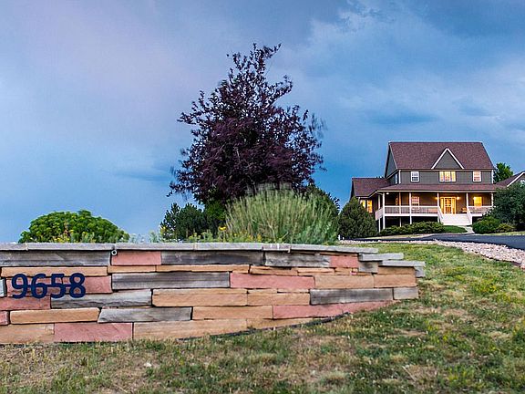 Absolute showstopper on 3 pristine acres in Parker. This 6 bedroom/5 bathroom stunner is surrounded by extraordinary mountain views. Relax on the expansive wraparound porch and watch the sun set behind the majestic Rocky Mountains. Even better, gather by the spectacular backyard pool with friends and family, surrounded by nature. The outdoor spaces cannot be matched - including a hot tub, putting green, and a gorgeous cabana with everything you need for outdoor grilling. This custom beauty offers a formal dining and living rooms, and a gourmet kitchen with granite and new double ovens. The main floor master is full of light and offers direct porch access. 4 more bedrooms, 5 baths, and kids playroom make this the ideal family home. Entertain to your heart''s content in the finished basement, which features a media room, wet bar, and weight room. Serenity at its best.