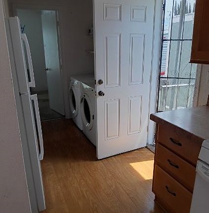 * Inside washer/dryer hookups * storage shed is included * Open kitchen with breakfast bar & skylight * Laminate floor