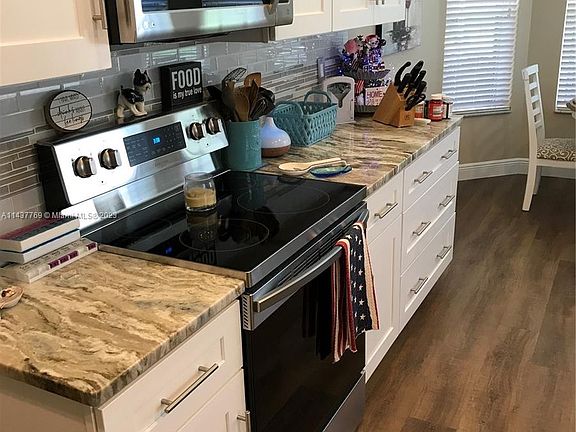 Immaculate, fully updated in Bellaggio. Leaded glass front doors. Vinyl plank wooden floors throughout. Detailed 8" Crown Moulding throughout. Accordian Hurricane Shutters. Plush professional landscaping. Wood shaker kitchen cabinets. Natural quartz countertops. Large kitchen pantry. Stainless steel appliances. Plantation blinds with wooden cornices. Picture frame moulding. 6" baseboard moulding. Family room slider with Plantation Shutter. Updated porcelain wall tile both bathrooms. Picture frame mirrors. Upgraded faucets. Closet organizers.