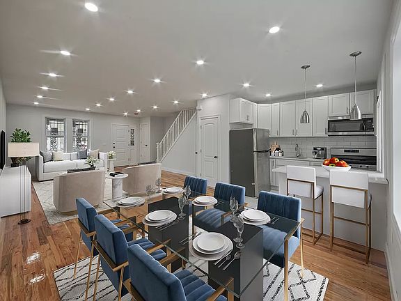 966 Brooklyn Avenue is a charming single-family house with a deep backyard and a gated front patio. An exemplar of classic East Flatbush living and design, this spacious home rises two stories and has 3 bedrooms, 2 full bathrooms, 2 powder rooms, and wonderful details throughout. Residents are greeted by a lovely covered porch and a front lawn perfect for flower patches and shrubs. The main level of the home boasts an open-concept living room, dining room, and kitchen with plenty of windows that let in an abundance of natural light. The kitchen is equipped with ceramic tiled floors, a while tile backsplash, marble countertops, pendant lighting, soft-close cabinets, a chic pull-down faucet, and a suite of high-end stainless steel appliances from Frigidaire. There is a convenient half-bathroom just off the living area, and the kitchen leads out into a huge backyard perfect for grilling, alfresco dining, sun lounging, gardening, and more. A staircase with a beautiful wood banister leads up to the second level of the home, which contains three bedrooms and a sky lit landing. The king-size primary bedroom overlooks the backyard and features couples' reach-in closets and a windowed en-suite bathroom with a step-in rain shower. The large second bedroom has ample closet space and a trio of side-by-side windows, while the third bedroom is perfect for use as a nursery, study, or home office. There is also a second full bathroom with a deep soaking tub and rain showerhead. A windowed cellar with laundry hookups, ceramic tile floors, storage space, and a half-bathroom completes the home. Recessed lighting, hardwood floors, and bronze hardware are common throughout the home. 966 Brooklyn Avenue is moments from all the restaurants, bars, cafes, and shops that line Church and Nostrand Avenues. It is close to Little Haiti and Prospect Lefferts Gardens, and nearby Prospect Park is a short bike or bus ride away. Nearby subway lines include the 2 and 5.