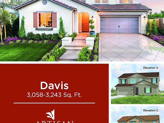 The Davis is the grandest of the Artisan Place homes, highlighted by its second floor balcony that opens to the great room below. This spacious home features a 3-car tandem garage and up to 5 bedrooms. The gourmet kitchen is sure to be the heart of the home with an oversized center island, abundance of counter space and butler's pantry. The thoughtful design of this home shines through in its large living spaces and attention to small details. The sweeping staircase leads to an expansive loft, central laundry room, additional bedrooms and beautiful owner's suite.
