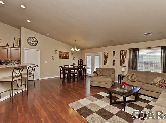 Pristine home with flowing ranch floor plan and open concept main living area. Vaulted ceilings in main living, dining and kitchen. Home feels extremly open and bright. The roomy kitchen with breakfast bar and eat in area make for a perfect entertaining home. Step out back to the back patio with a pergola for all of your summer time entertaining, there is room for playing, cooking on the BBQ. Master bedroom is large enough to have an office or large furniture. Master bathroom is spacious with a large walk in closet with great storage. The additional 3 bedrooms are roomy with plenty of closet storage. This home has a very modern feel with low upkeep including central air conditioning. Good size RV parking on the East side of the home.