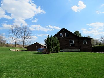 This beautiful well maintained 3 bedroom, 2 bath log home, with an over sized 2 car detached garage and a 40X32 barn with heated workshop is situated on over 12 acres.Property features blacktop driveway, Pond, Rocking chair porch, patio with hot tub and follow the mowed path to an additional rustic cabin in the woods, where the views and tranquility will take your breath away! This custom built home features open floor plan, cathedral ceilings with exposed beams, very modern kitchen that overlooks the dining area for great entertaining. This home and property has to be seen to appreciate the workmanship that has gone into every aspect of each building and the layout of the landscaping. Seller is willing to look at all reasonable offers....Call for your personal tour today.