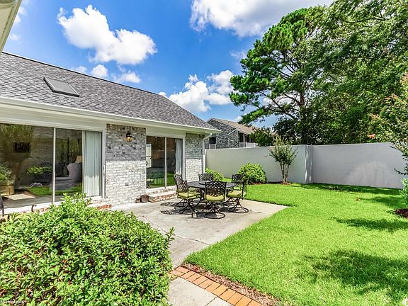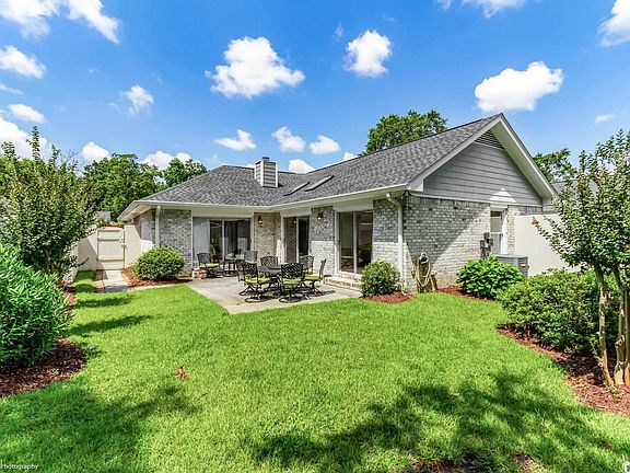 Check out this spacious move-in ready 2 BR 2 BA all brick house a short cart ride to the Beach!! Very Rarely does a home this perfect come on the market! Talk about carefree living at its finest! Wonderfully located within a mile of the beach, and easy access to everything you need! This beautiful and spacious 2 BR 2 BA home can be an excellent primary residence or the much sought after 'beach bungalow' WITH a 2 Car garage AND a private fenced in backyard/courtyard! Gorgeously landscaped, all brick home with a brand new roof and gutters, new garage door, full exterior and interior paint, luxury vinyl plank and tile plus high-end plantation shutters in the entry, kitchen, and dining areas! The spacious living room looks out onto the generous patio space and lush backyard - perfect for grilling and outdoor entertaining! The primary bedroom and the second bedroom are on opposite ends of the house and also have tons of natural light with sliding glass door access to the backyard PLUS each has a private and spacious bathroom and walk in closets! Central heat and air plus an abundance of ceiling fans for summertime breezes, and a cozy fireplace for the winter months! The Park is a small community nestled amidst mature landscaping with a nice community pool. HOA Dues are very affordable! Don't miss your chance to call this one Home!!