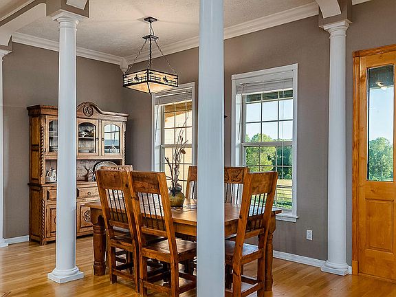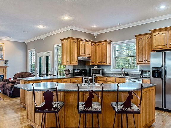 This beautiful 5 bedroom custom built home is perfect for the farm family! Sitting on 60acres with a gorgeous view of the mountains on a paved road is set up for the perfect farm. With pipe fence, cross fences, water on both sides, beautifully maintained pasture and working corrals; this ready for you to get to work! The open floor concept on the main level with hardwood and a gas fireplace make it perfect for a large family. The many windows allow you to enjoy the gorgeous view through out the day. The walk-out basement adds extra living space with a family room, bedroom, bathroom and John Deere garage. You will love the storage through out this house. Each bedroom has its own bathroom and walk-in closet. The master has a large tub, walk-in shower, 2 closets and separate vanities.
