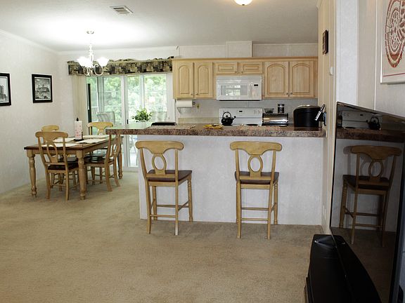 This is a 2014 year home and is priced $35,000 below a new 2020 year home. You will love this furnished two bedroom, two bath split plan home with a raised screen room and a carport. It is in like new condition because it is almost new. There is so much more to tell you but the best way to find out more is make arrangements to see for yourself. Great deals like this don't come around every day! Cypress Creek Village is a 55+ community but, there may be room for you at 40+ !! LOCATED IN BEAUTIFUL CYPRESS CREEK VILLAGE AND MONTHLY FEES ARE ONLY 424.60 LIVING ROOM 15' 3 X 15' 3 Enter the Home into the living room, Open to Kitchen and Dining, Carpeted Flooring and a Lighted Ceiling Fan. Sofa, 2 chairs, 2 end tables with lamps and an entertainment center remain. DINING: 9' 1 x 7' 7 Carpeted Flooring, Lots of Natural Lighting from Sliding Doors to Screened Florida Room, includes table with 4 chairs and 2 matching stools. KITCHEN 8' x 11' Lots of Light Cabinetry, Open to Living Room, Double Sink with Sprayer Overlooks Living Room, Pantry. Appliances Include: Refrigerator, Range, Built-in Microwave, Dishwasher. MASTER BEDROOM 11'7 x 15'5 Complete with Carpeted Flooring, a lighted ceiling fan, linen closet and a Large Walk in Closet that measures 3' 11 x 15' 5, Private to the Master Bath. Furnishings Include: Queen Bed, Dresser. MASTER BATH Walk in shower, Double Vanity with light cabinets, mirror and vanity lighting above, laminate flooring, GUEST BATH Vinyl Flooring, Tub/Shower combination, Perfect Size Vanity with Mirror, Private Entry/Exit to Guest Room as well as laundry room GUEST ROOM: 11' 8 x11' 2 Carpeted Flooring, Lighted Ceiling Fan, Walk in Closet that measures 4' 3 x 4' 8. Private entry to guest bath. Full Bed and a Dresser is included. LAUNDRY ROOM Off kitchen area with a Hotpoint Washer and Dryer. Also a built in table to fold your clothes on. FLORIDA ROOM Very large screen room, off kitchen, via sliding glass door. Private with no rear neighbors, wonderful for entertaining. Vinyl tinted windows, exit entry from patio as well STORAGE SHED Located in the rear of the home with overhead storage and very clean PICTURESQUE HOUSE -This is truly a show place, don't miss it! ABOUT THE PARK: Cypress Creek Village is a Gorgeous Gated Community in a Country Setting. Located in South East Winter Haven just minutes away from HWY 27 Makes for Easy Access to Orlando. The Daily, Weekly and Monthly Activities are held in the Residents Club House. You will Love the Large Heated Swimming Pool and Spa. Additional Features: Onsite State of the Art Work Out Facility, and a Gorgeous Billiard Room, and Shuffleboard. One of Winter Haven's Golf Courses is Right Across the Street! You will Love Living Here! There is Always Something Going on at the Club House and the Grounds are Very Manicured! No Credit Check with Application! Cypress Creek Village is located 1/2 mile west of HWY 27, right off Dundee Road (SR542). Winter Haven is a beautiful area which boasts the "Chain of Lakes" - 16 lakes connected by channels. There are many excellent shopping centers including a Wal-Mart Super Center on Cypress Gardens Blvd. Winter Haven Hospital, Heart of Florida Hospital....not to mention the many lakes and golf courses. All of this is within 10 miles of Cypress Creek Village. PLUS, The Park is 45 miles to all the Disney attractions, 40 miles to Bush Gardens and 5 miles to Legoland!! All listing information is deemed reliable but not guaranteed and should be independently verified through personal inspection by appropriate professionals. American Mobile Home Sales of Tampa Bay, Inc. cannot guarantee or warrant the accuracy of this information, measurements or condition of this property. All measurements are approximate. The buyer assumes full responsibility for obtaining all current rates of lot rent, fees, or pass-on costs associated with the community, park, or home from the community/park manager. American Mobile Home Sales of Tampa Bay,