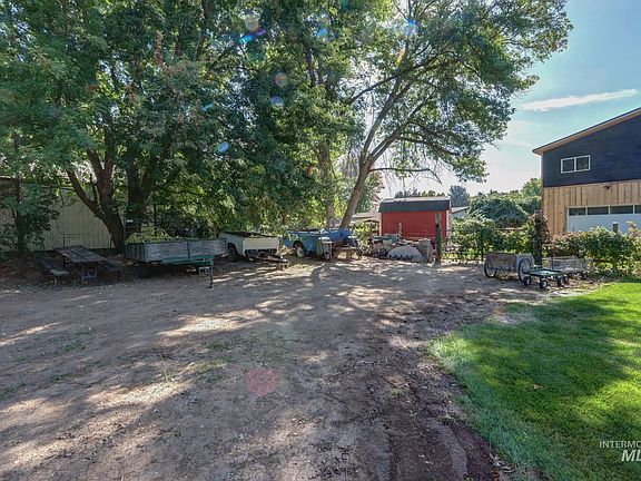 Charming country setting on 1 acre with huge two story shop only a mile from downtown Eagle! No CC&Rs or HOA. Beautiful grounds with mature trees, back pasture, garden space & darling potting shed/hobby house. Large patio off dining area to enjoy the private back yard. Very low utility costs with well, septic & solar - only small electric bill in winter. Huge primary suite addition you will love with double sinks, soaker tub, walk-in shower and dream closet. So may updates have created a wonderful spacious home with plenty of living space and storage. New 1680 SF shop is attached behind 2-car front garage with separate man door entry in front and large roll up door in back to drive around for vehicles. (front garage does not drive through to shop) Second story shop is unfinished, so many possibilities for this 1680 SF space... apartment, business, studio or hobby -CHECK W/CITY FOR YOUR DESIRED USE. Multigenerational opportunities! Come by and see us, right in the heart of Eagle.